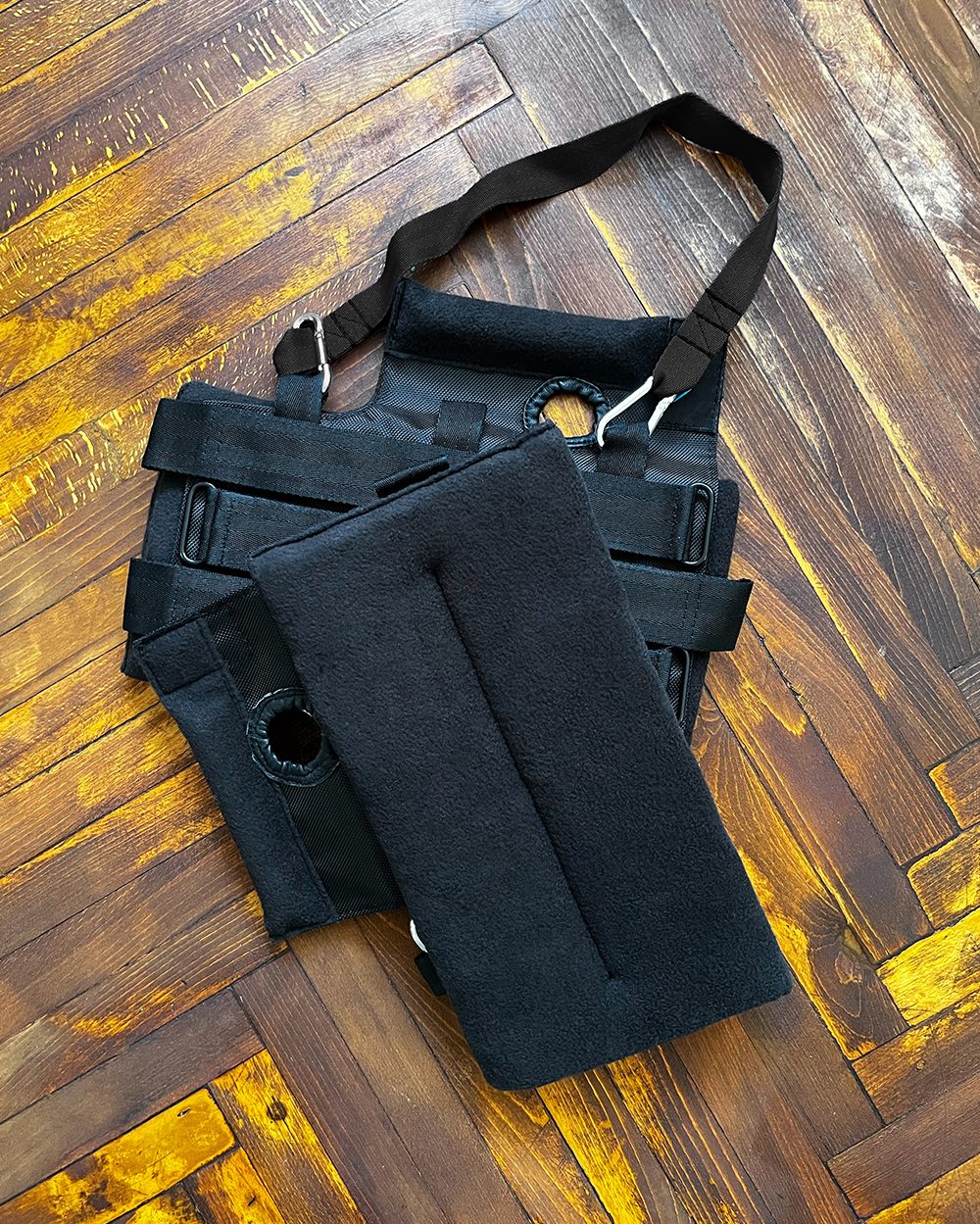 Манжети мають кілька точок кріплення для карабінів (3 для рук і 4 для ніг), петлю для пальця для зручного самостійного надягання, вбудовану планку для захисту зап’ястя, щільну фіксацію без тиску та порушення кровообігу, протестовану вантажопідйомність до 186 кг, а також змінні м’які вкладиші для різних користувачів. Основа виготовлена з високоякісної надміцної тканини, наповнювач — фліс із 2 см натурального повсті, конструкція міцна, зносостійка, придатна до прання та не рветься, додаткові вкладиші можна прати вручну або в машині.